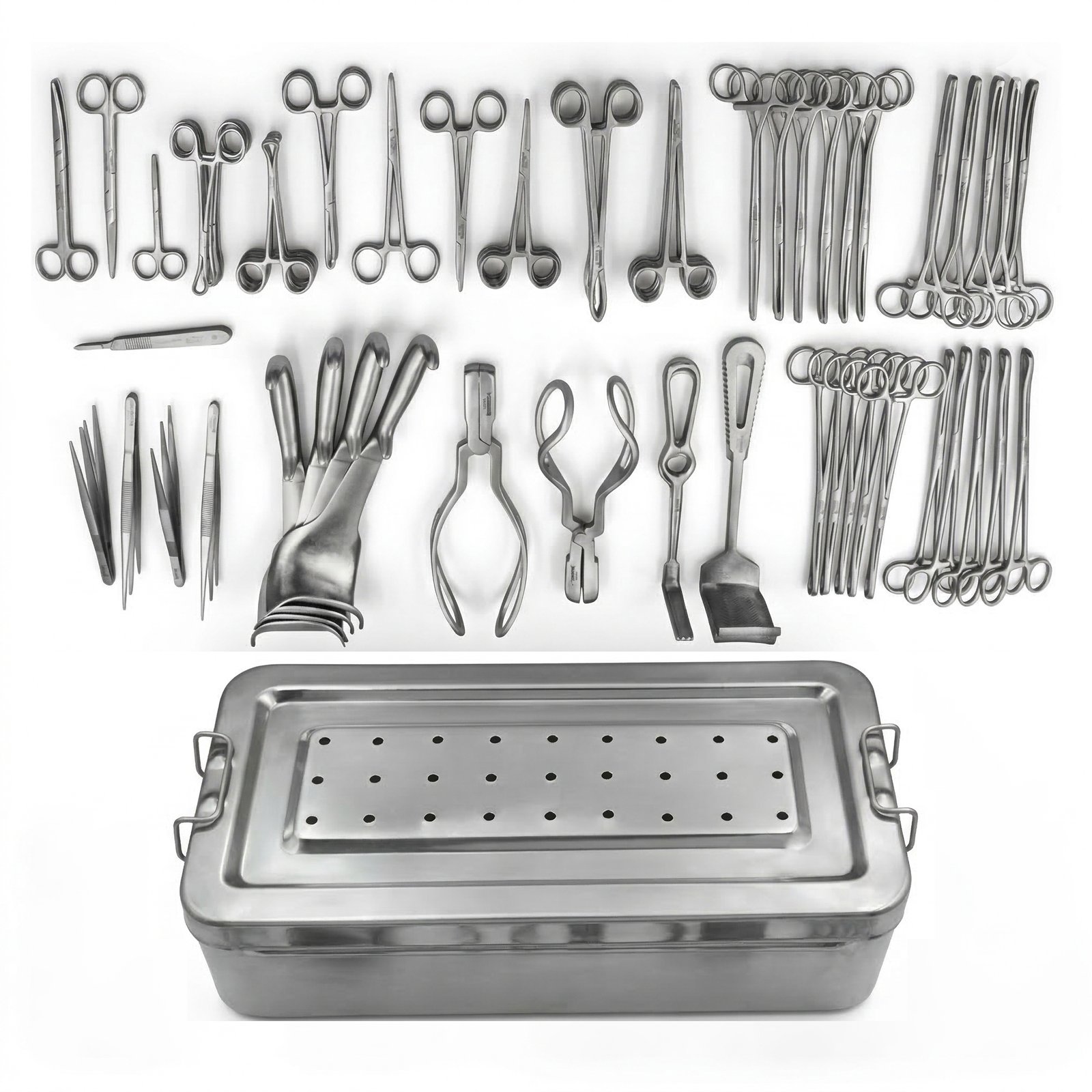 C-section procedures require controlled dissection of the abdominal wall and uterus, safe handling of delicate tissues, effective bleeding control, and accurate suturing. This complete instrumentation system ensures smooth workflow and dependable performance throughout the operation. It includes specialized obstetric forceps for delivery assistance, artery forceps for hemostasis, dissecting forceps for tissue handling, peritoneum forceps for uterine and abdominal tissue management, sponge-holding forceps for sterile field maintenance, and needle holders for secure suturing.