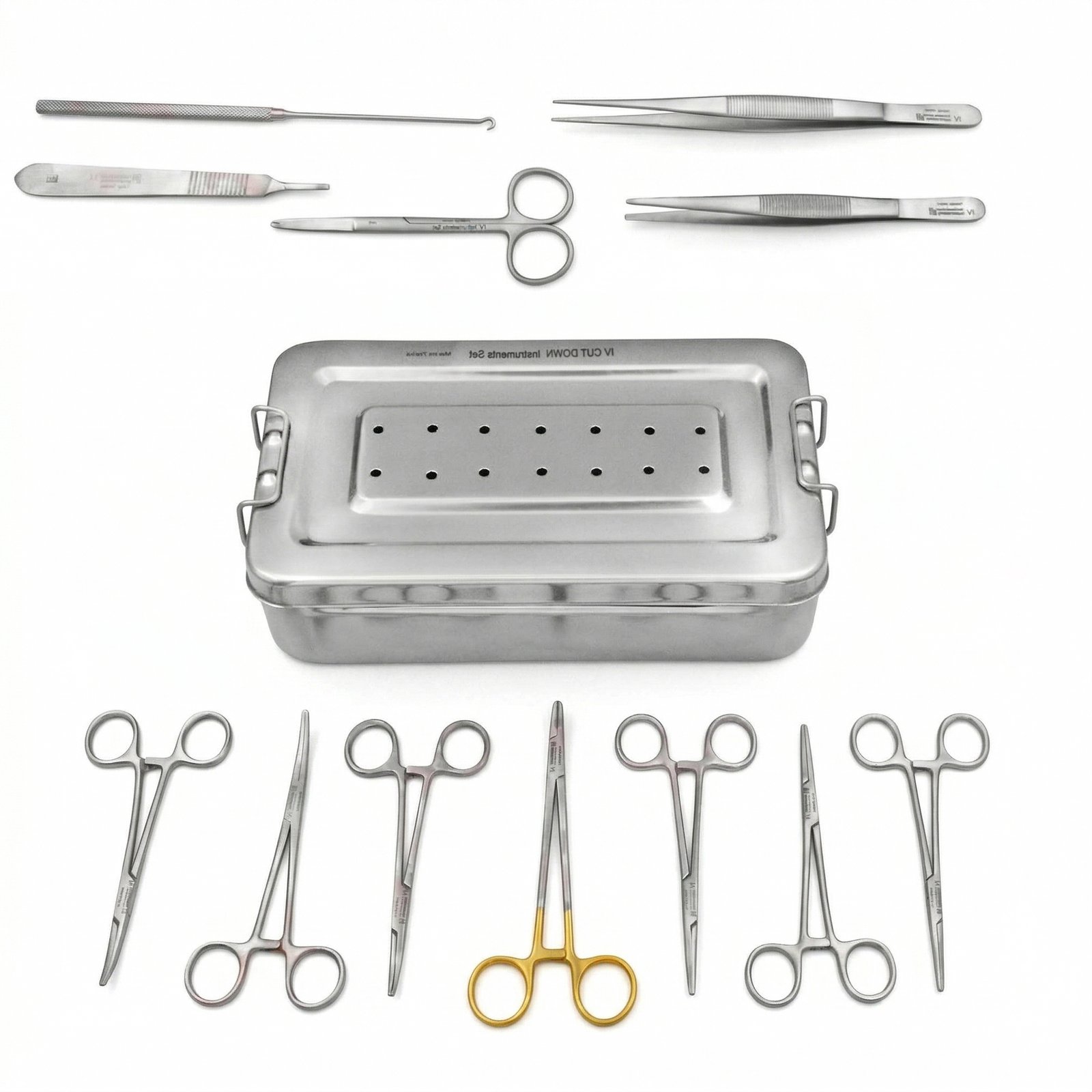 NJ Medical Instrument IV Cut Down Set is a 13-piece surgical instrument kit designed to provide safe and controlled vascular access in emergency and difficult IV access situations. Ideal for collapsed veins, pediatric cases, trauma, and chronic patients, this set ensures rapid fluid and medication administration. Crafted from Medical Grade Stainless Steel, fully reusable and autoclavable, and certified by FDA, CE, and ISO standards.