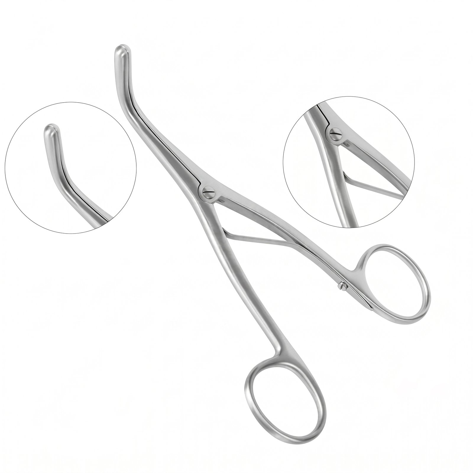 This instrument features angled jaws with blunt, smooth tips, ensuring atraumatic dilation while minimizing the risk of tissue damage. The angled configuration allows for enhanced access and visibility in confined airway spaces, making it highly effective in delicate surgical environments.