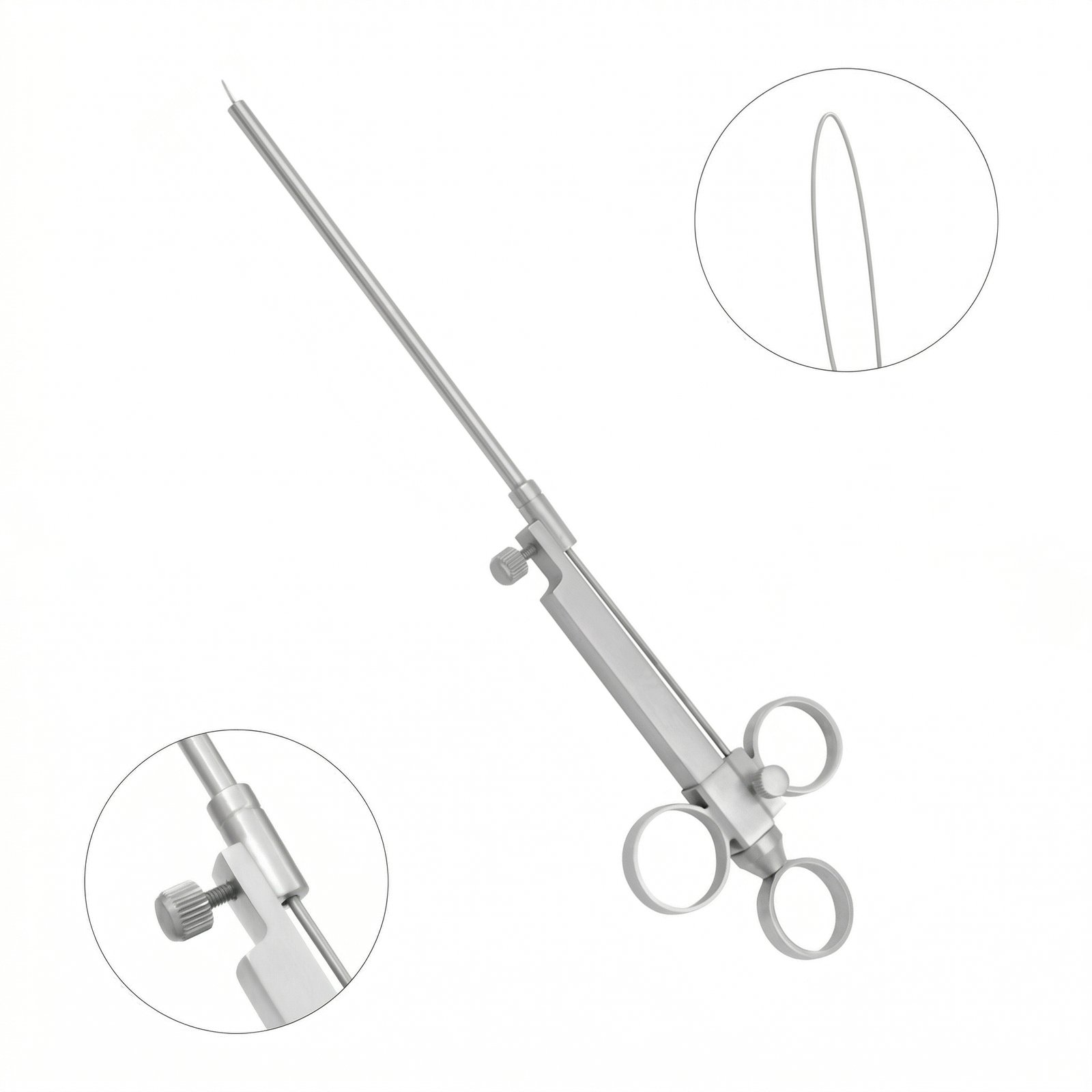 With an extended 25 cm length, the instrument allows surgeons to comfortably reach deeper areas of the nasal passage while maintaining optimal control. The sharp snare loop is specifically designed to smoothly encircle and securely capture tissue, enabling effective and controlled removal of polyps and lesions with minimal trauma to surrounding structures.