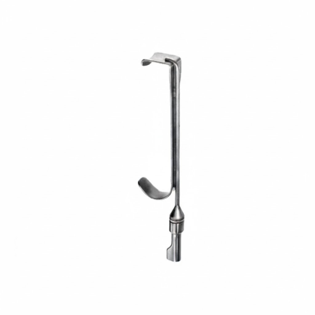 This retractor features a fiber optic fitting, allowing integration with illumination systems to enhance visibility in deep or confined surgical areas, providing surgeons with superior control and precision during procedures. Its 17 cm length offers optimal reach, while the ergonomic design ensures comfortable handling and secure grip, reducing fatigue during delicate operations.