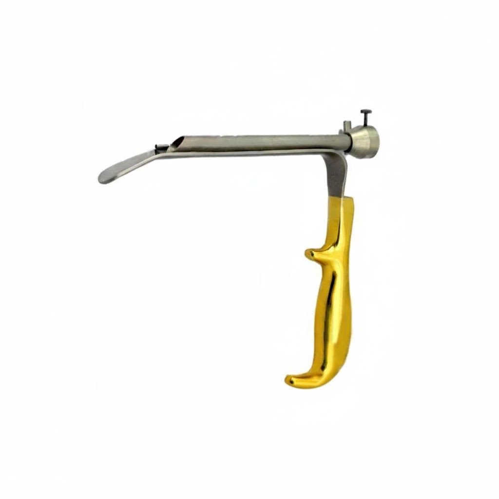 Featuring a blade size of 180 × 25 mm and a built-in stopcock to hold a 10 mm telescope, this instrument ensures secure and stable placement of endoscopes during procedures. It is also compatible with 5 mm endoscopes, offering versatility for a range of minimally invasive surgeries. The gold-plated handle enhances ergonomics and provides a professional, durable finish for comfort and precise handling.