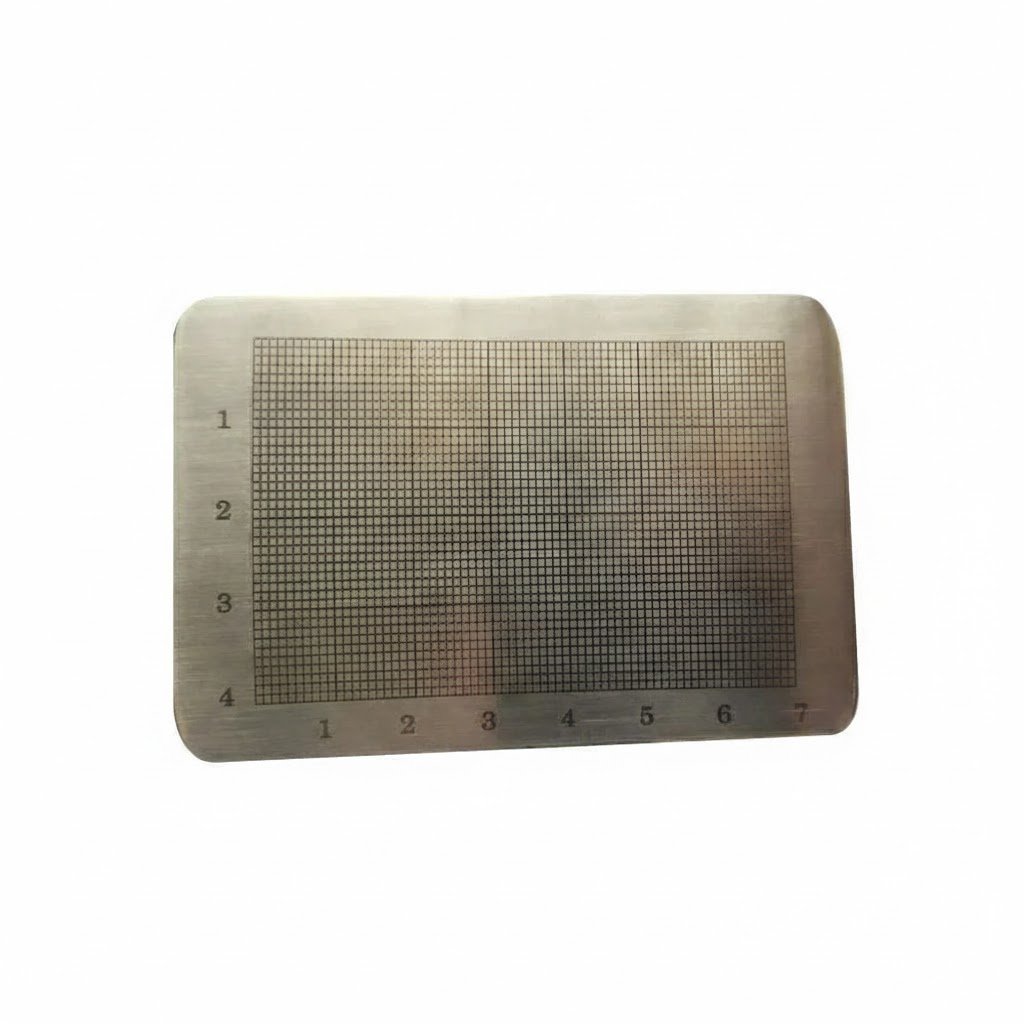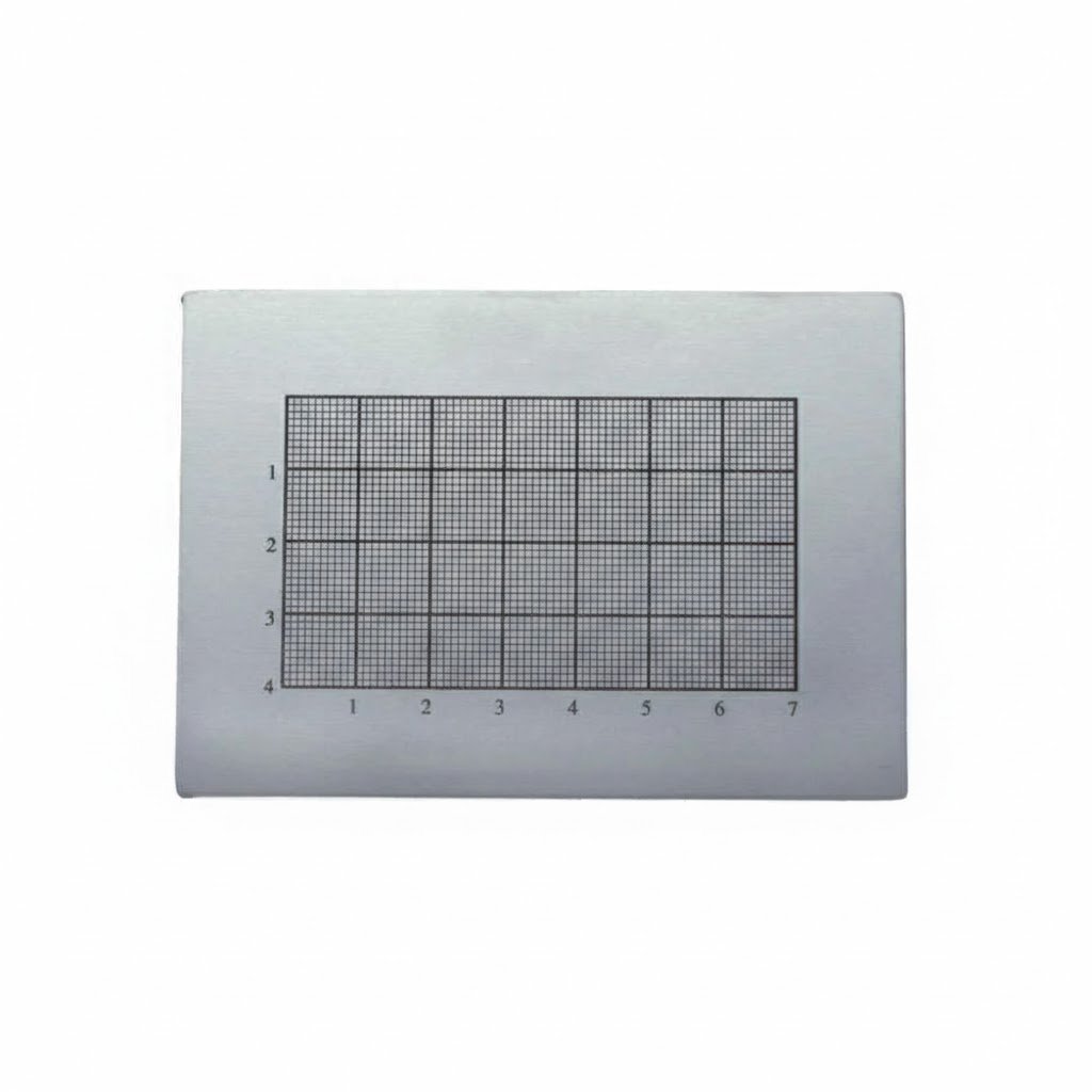 The grid is clearly marked in millimeters, allowing surgeons to accurately measure graft dimensions and maintain symmetry. In addition to serving as a measuring tool, it can also be used as a cutting surface, offering practical functionality in the operating room. The lightweight yet durable aluminum construction ensures ease of handling, resistance to corrosion, and long-lasting performance.