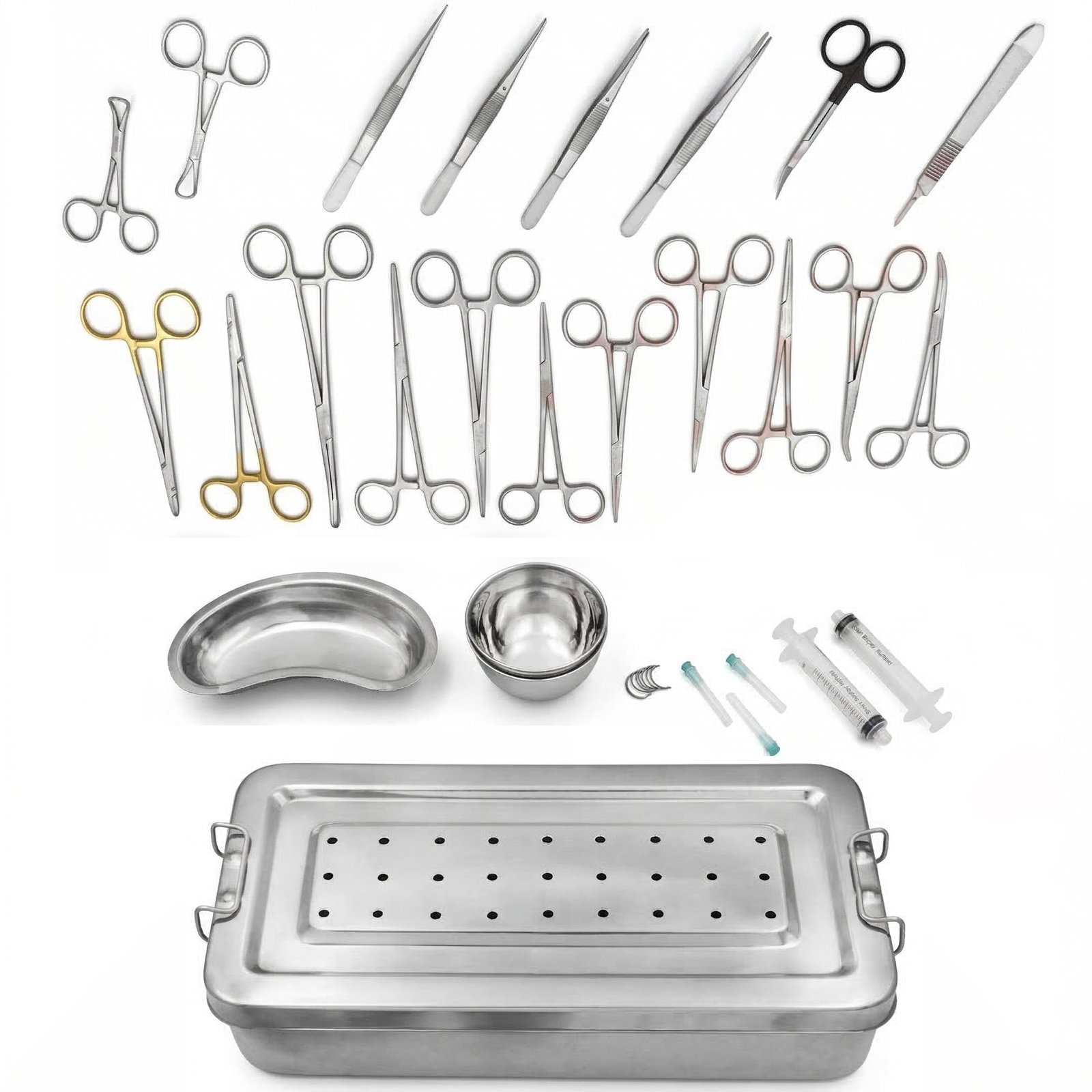 All instruments in this premium set are handcrafted from medical-grade German stainless steel, ensuring superior strength, corrosion resistance, and long service life. The instruments are fully reusable and designed to withstand repeated sterilization and autoclave cycles without compromising performance. The complete set is supplied in a durable sterilizing box for safe storage, organization, and transport.
