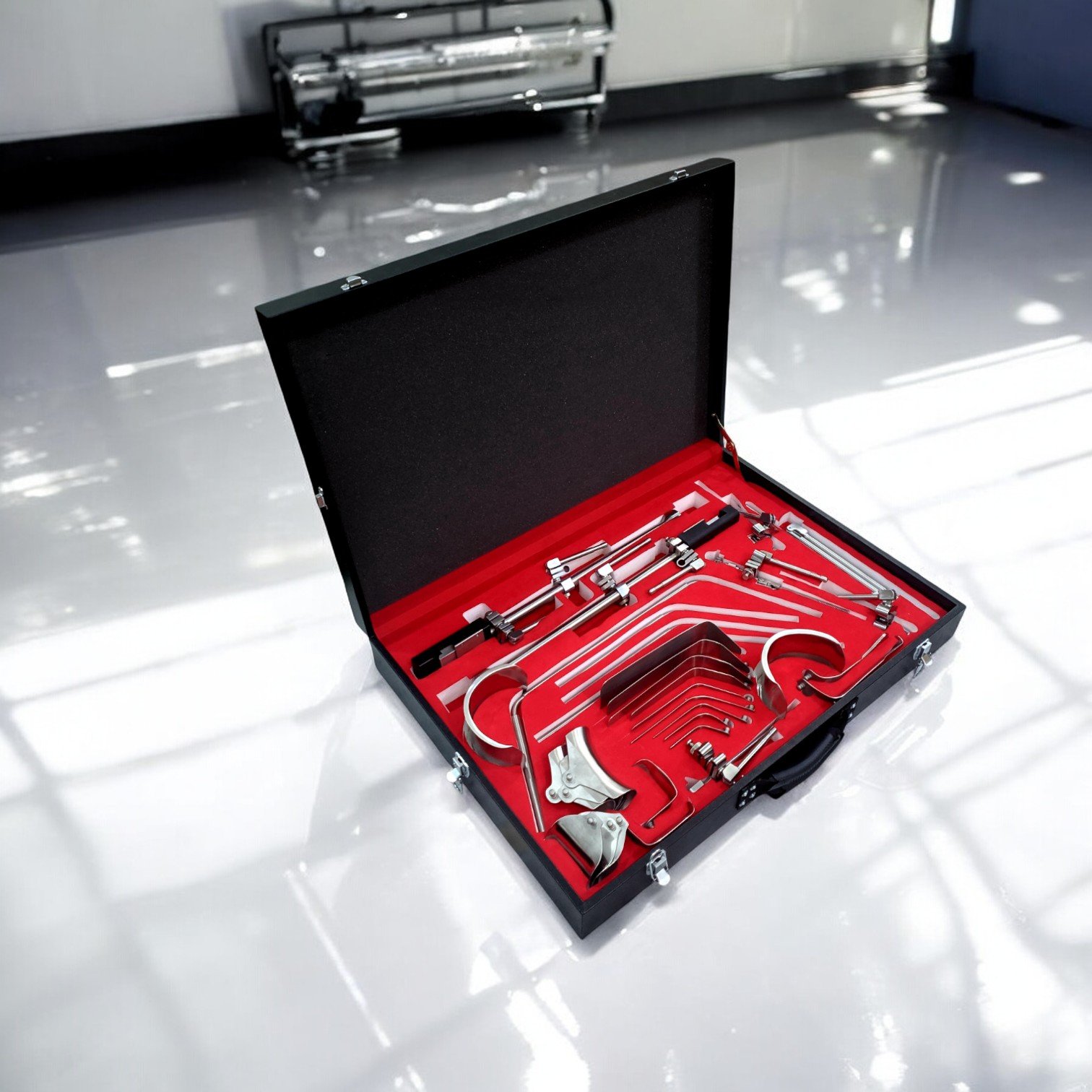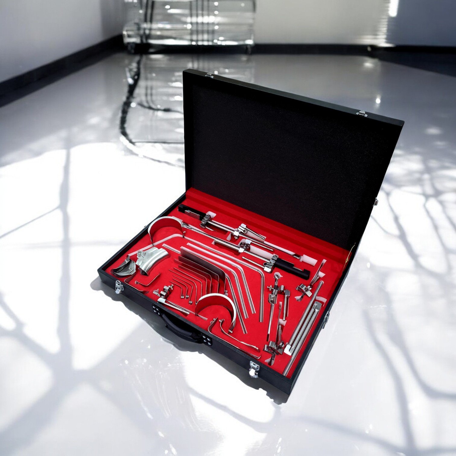 Stored in a sturdy and organized case, the entire set is easy to access and maintain, making it an indispensable tool for operating rooms. With CE marking and reusable construction, the Thompson Retractor Set combines reliability, flexibility, and convenience, making it an essential component of advanced surgical instrument collections.