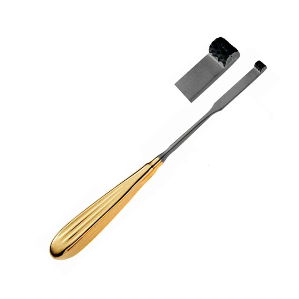 NJ Medical Instruments Webster Glabella Rasp – Push/Pull features a 6 mm wide, 8‑1/2″ (21.5 cm) tungsten carbide working surface with a Push/Pull design for precise bone contouring in the glabella region and creation of the nasofrontal angle. Handcrafted for durability, control, and long-lasting performance.